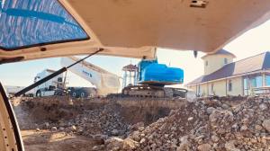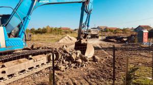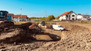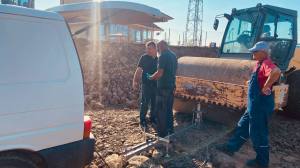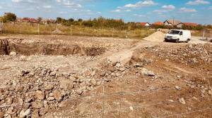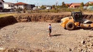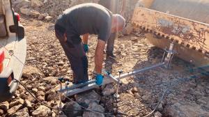 Tasare pat de piatră la groapa de fundație și testare stabilitate.