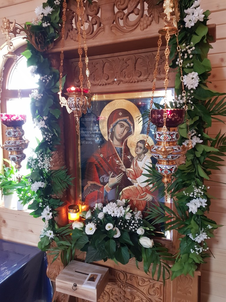 Din mila Maicii Domnului, la noi în biserică, avem o copie după această minunată icoană, adusă de la Sfânta Mănăstire Dochiariu, spre folosul tuturor credincioșilor creștini care ne calcă pragul sfântului locaș.